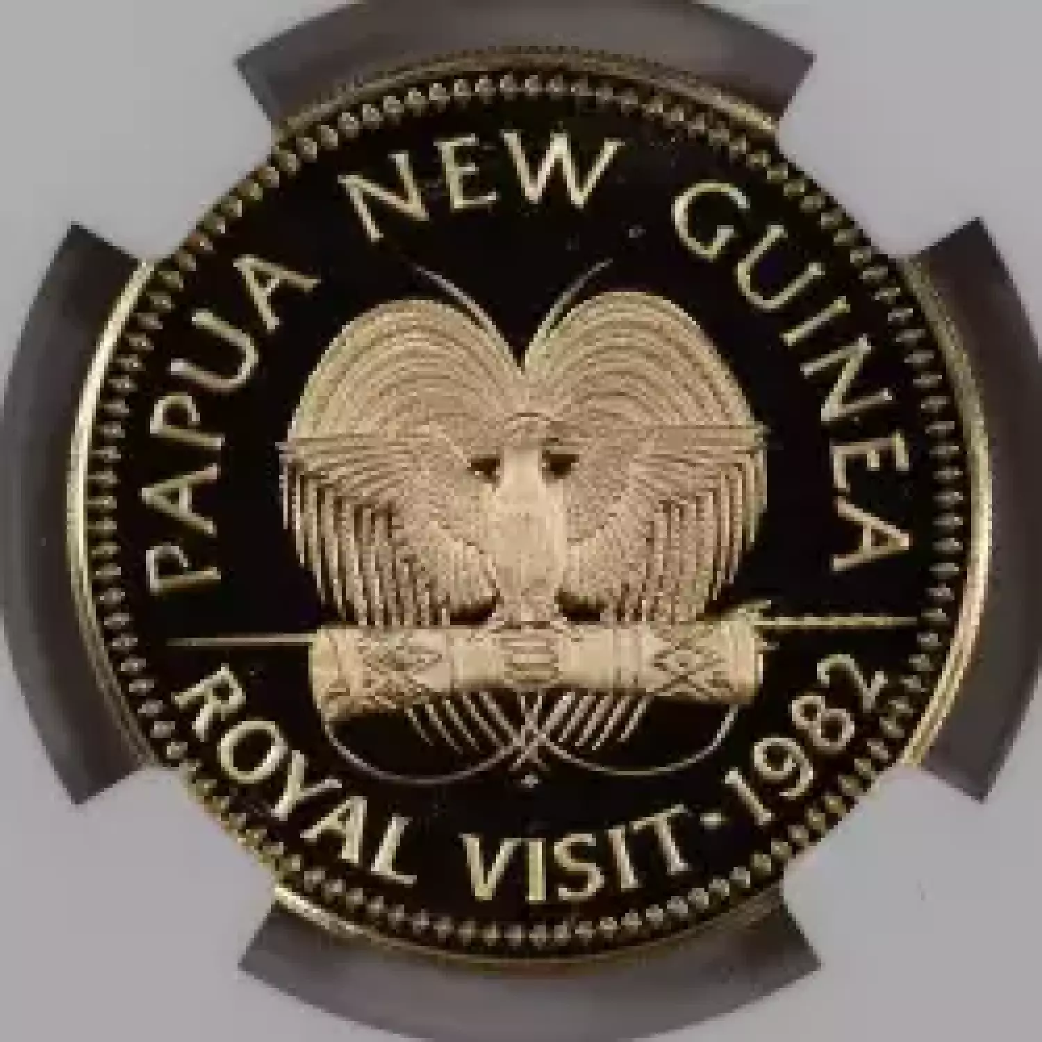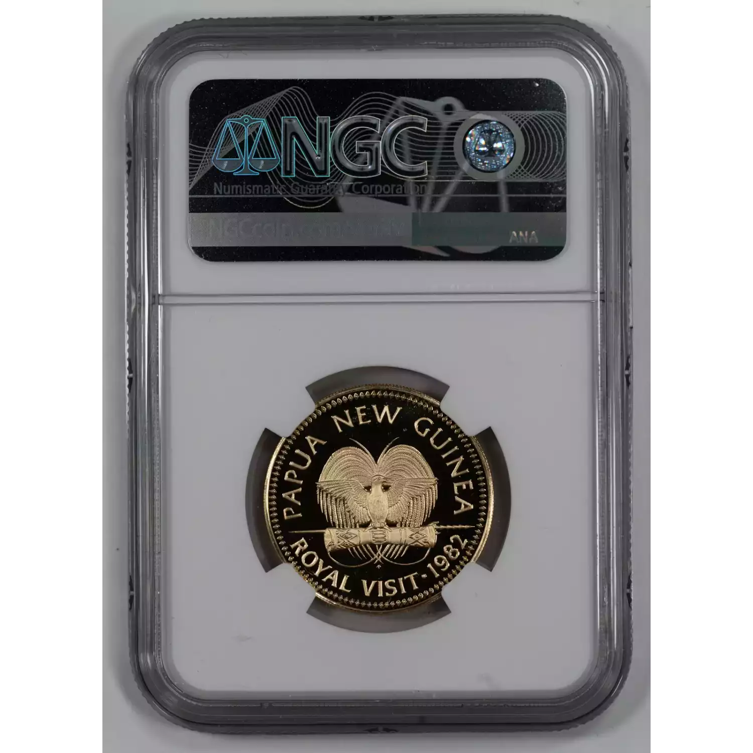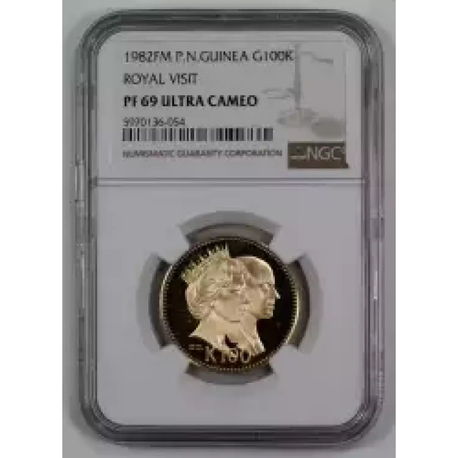 1982 FM PROOF PAPUA NEW GUINEA ROYAL VISIT G100K GOLD NGC PF 69 CAMEO (054) ULTRA CAMEO