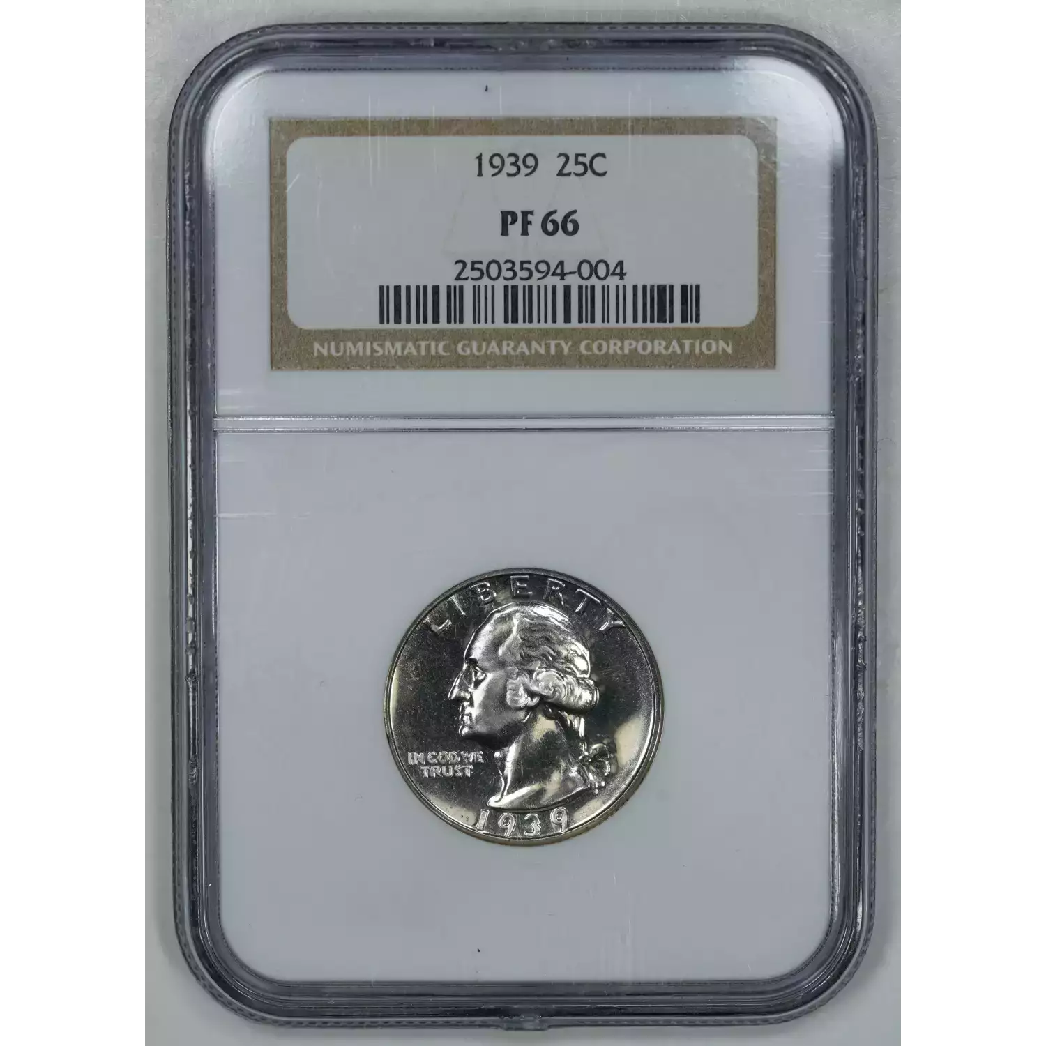 1939 PROOF WASHINGTON QUARTER 25C SILVER NGC CERTIFIED PF 66 PROOF (004)
