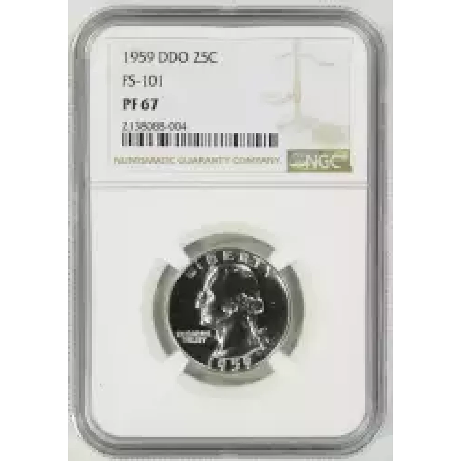 1959 DDO PROOF WASHINGTON QUARTER 25C FS-101 NGC CERTIFIED PF 67 PROOF (004) DOUBLED DIE OBVERSE