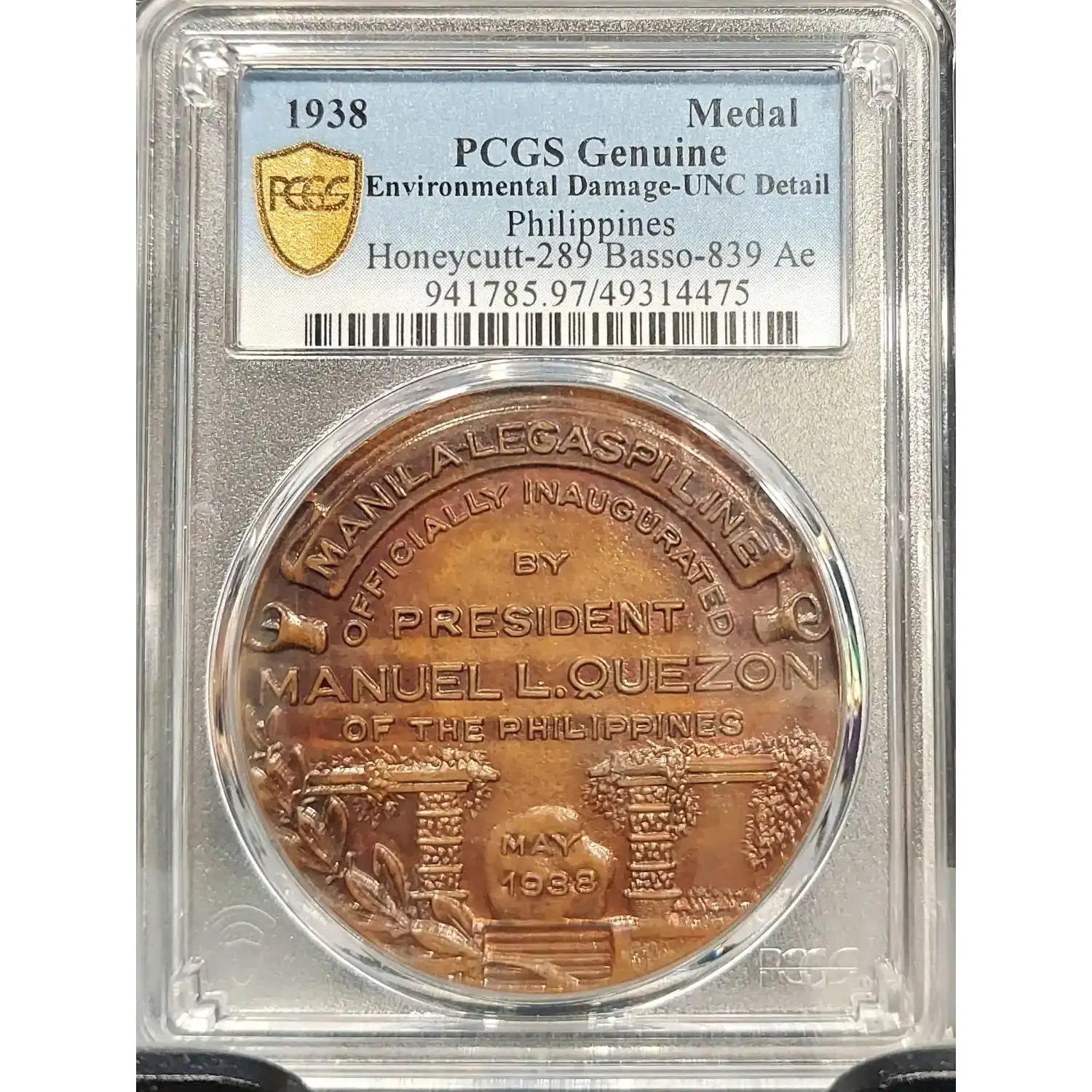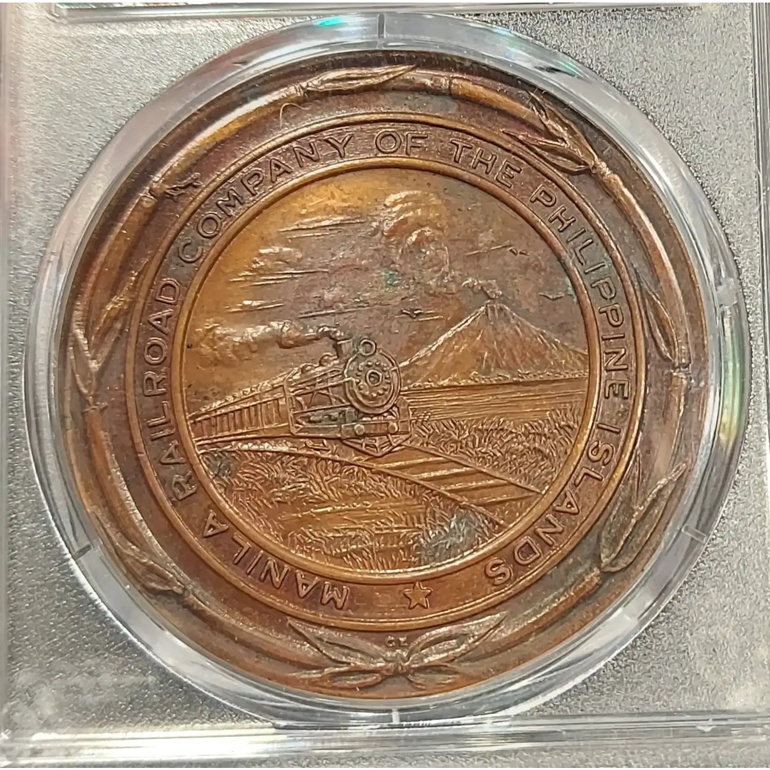 <header> 1938 PHILIPPINES MANILA RAILROAD COMPANY MEDAL HONEYCUTT-289 BASSO-839 AE | PCGS CERTIFIED GENUINE UNCIRCULATED | DETAIL - ENVIRONMENTAL DAMAGE