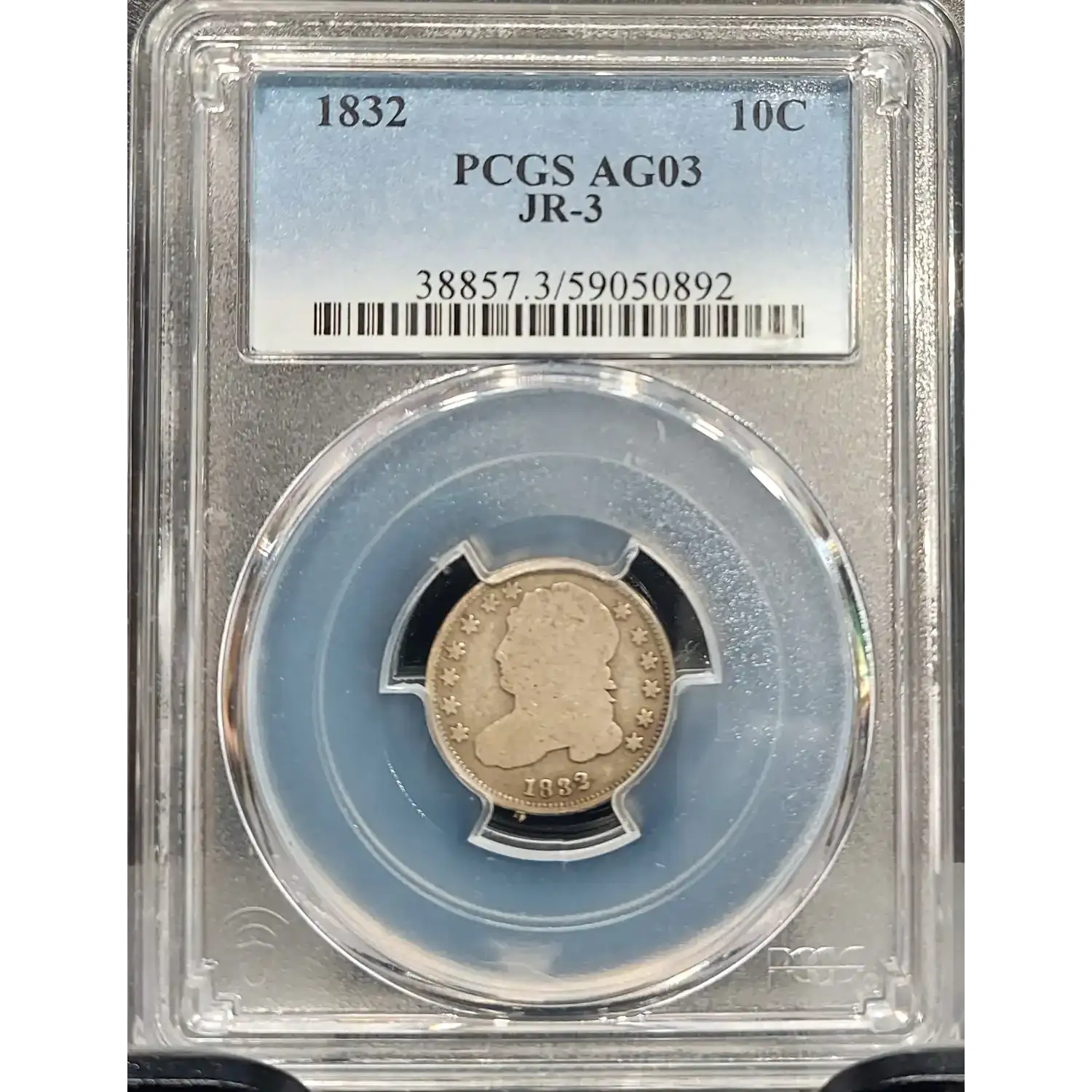 <header> 1832 CAPPED BUST DIME 10C JR-3 PCGS CERTIFIED AG 03 ABOUT GOOD (892)