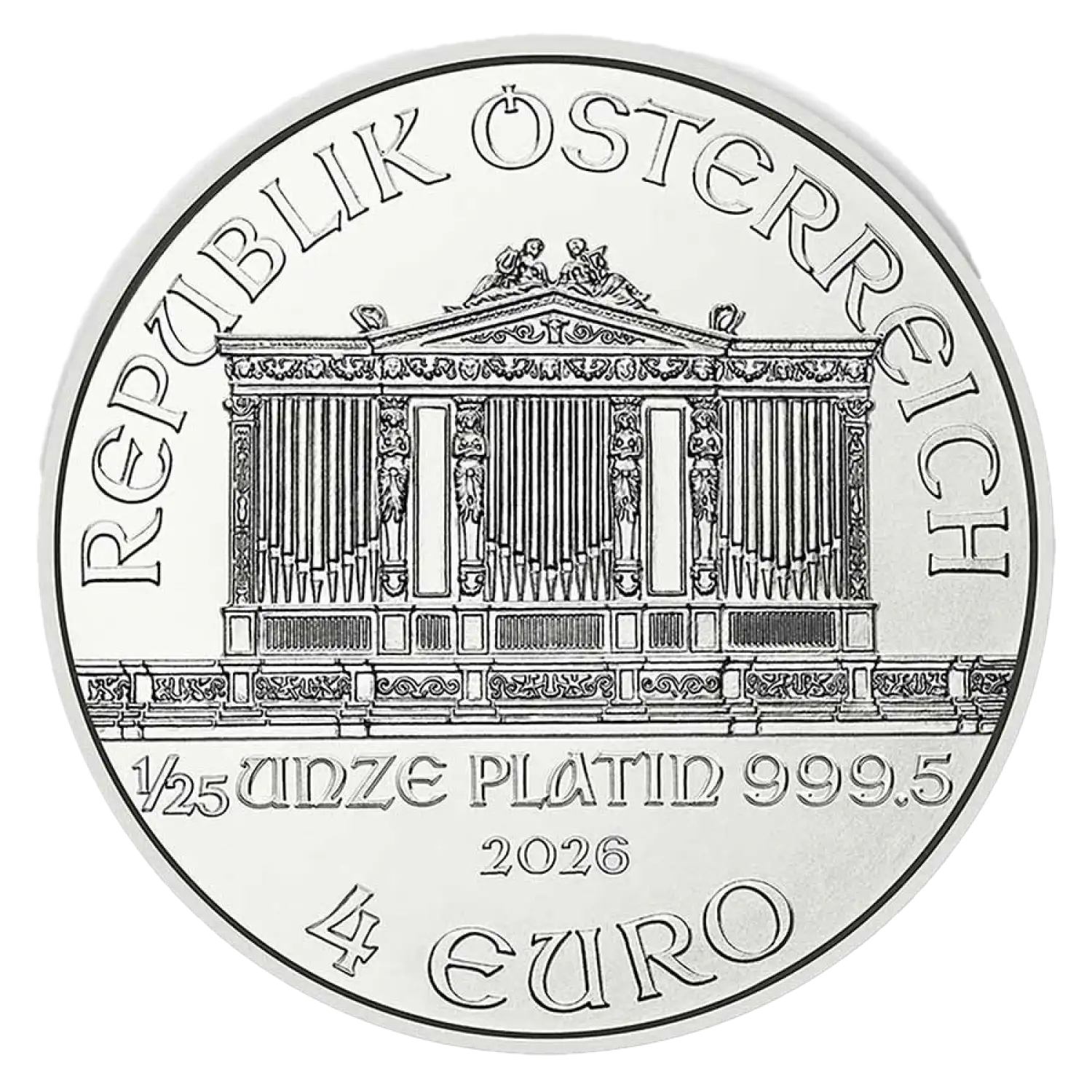 The 2026 1/25oz Austrian Platinum Philharmonic coin is a remarkable addition to any precious metals collection, offering both beauty and investment potential. Struck by the Austrian Mint, this coin not only embodies the rich cultural heritage of Austria's musical legacy but also provides a fantastic opportunity for investors looking to diversify their portfolios with platinum. Known for its distinctive design and high-quality craftsmanship, the Philharmonic series has become a favorite among collectors and investors alike.