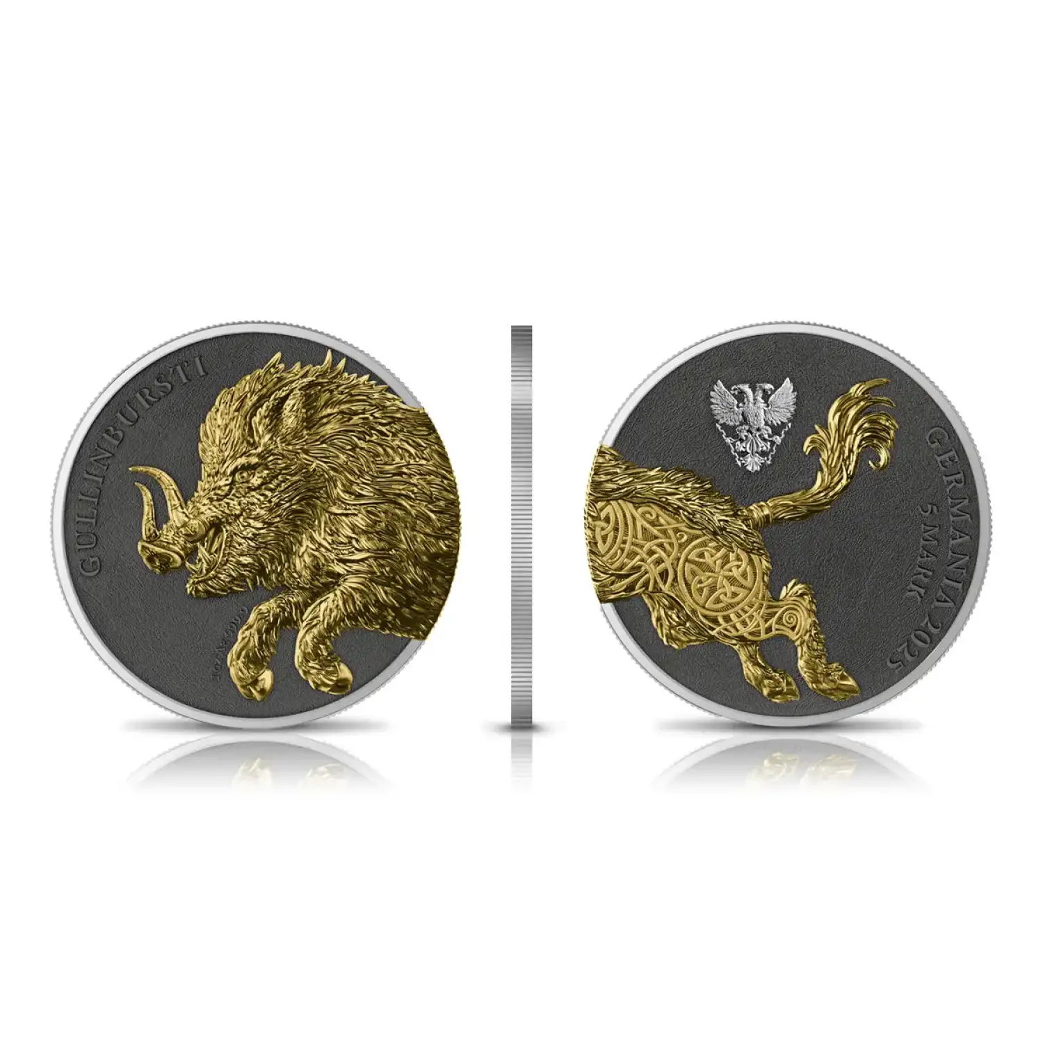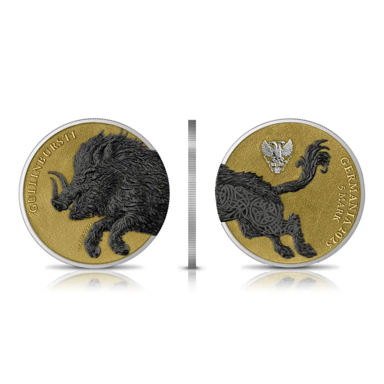 Elevate your collection and secure your investment with the 2025 2 x 1 oz Germania Beasts - Gullinbursti Geminus Silver Coin. Order yours today and own a piece of mythological majesty!