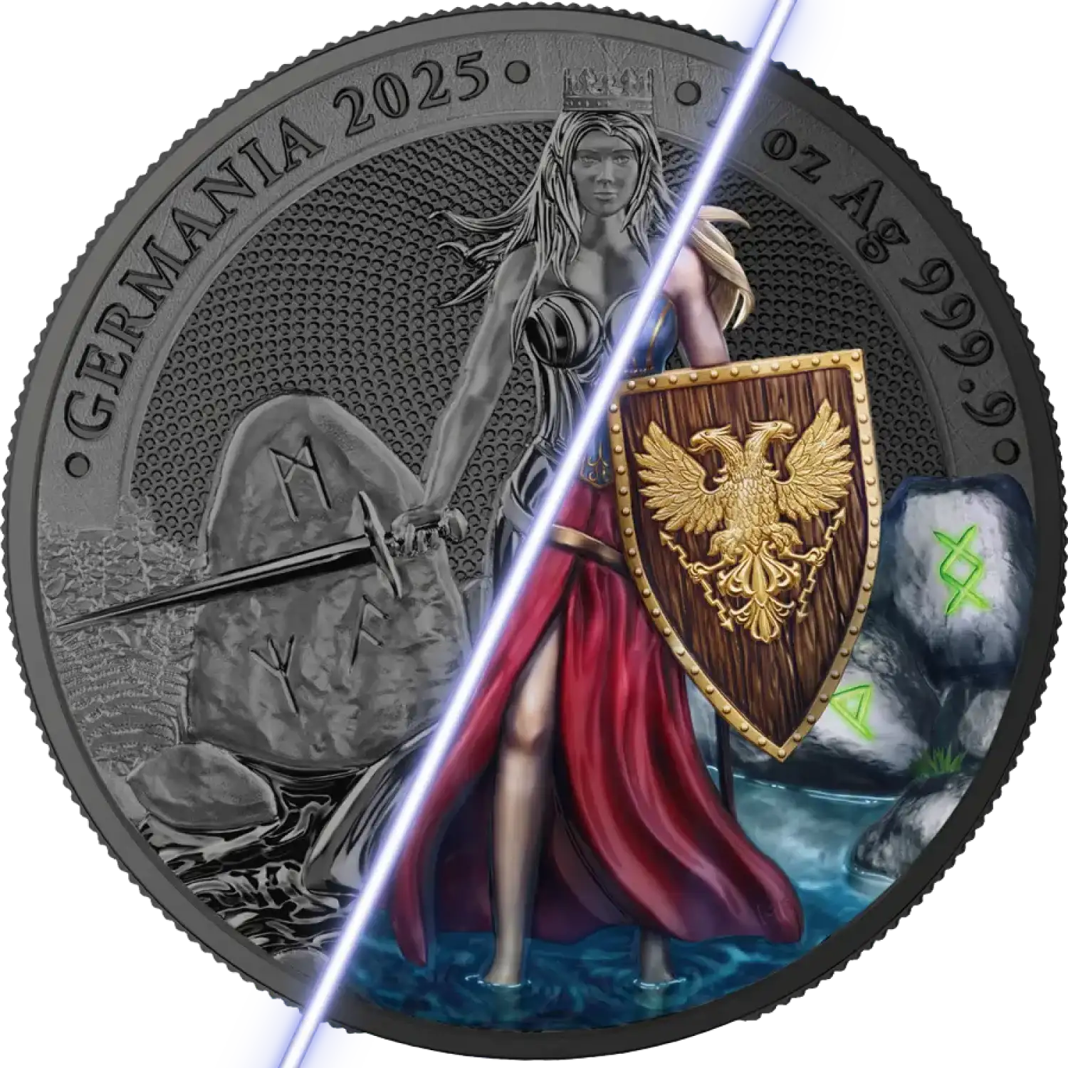 Adding the 2025 1 oz Germania - Black Silver BU WMF Edition Coin to your collection means possessing a piece of art that is not only beautiful but also holds substantial value. Whether for personal enjoyment or investment purposes, this limited edition coin is sure to impress and offer lasting significance.
