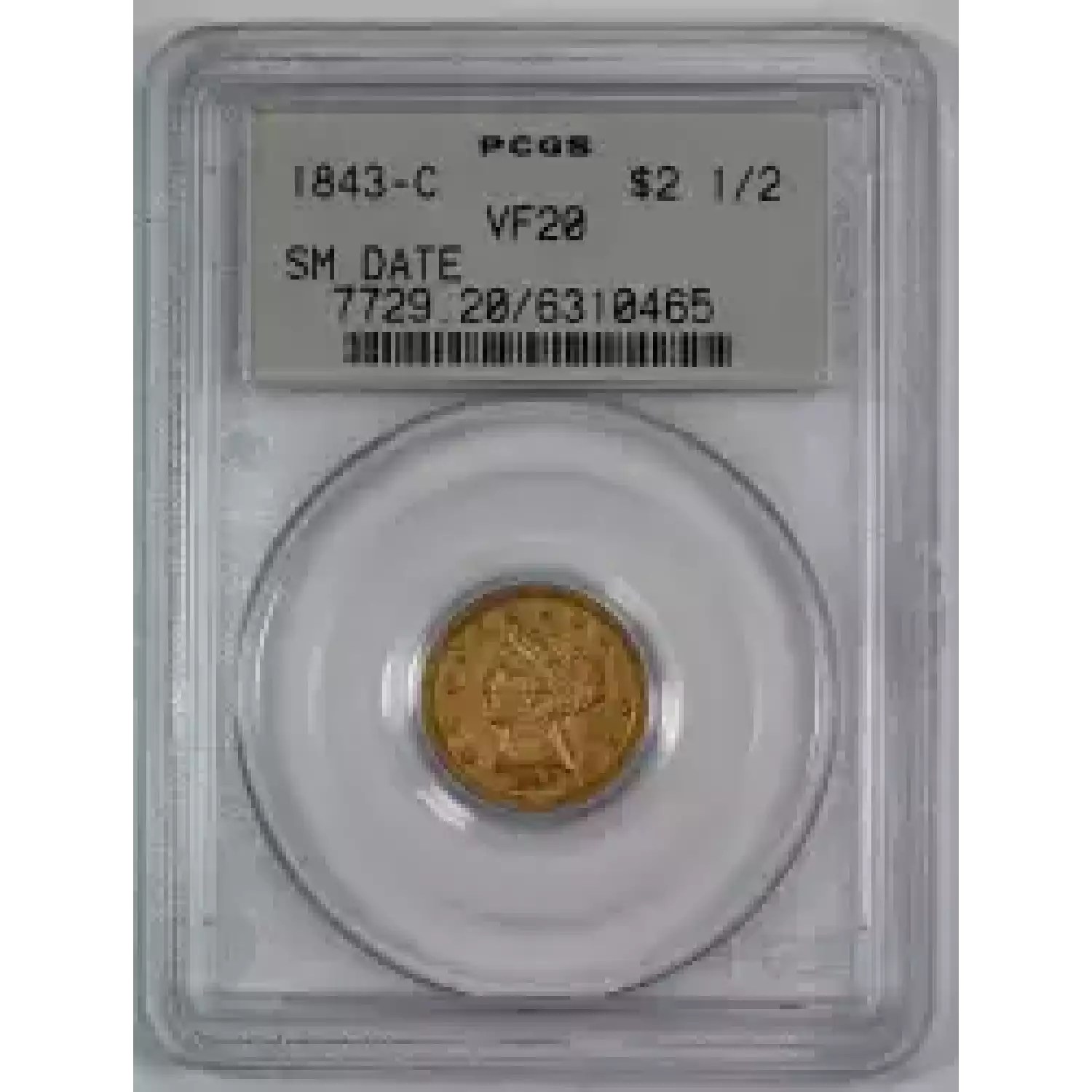 1843-CHARLOTTE $2.50 Gold Liberty Head Quarter Eagle PCGS VF-20 Small Date