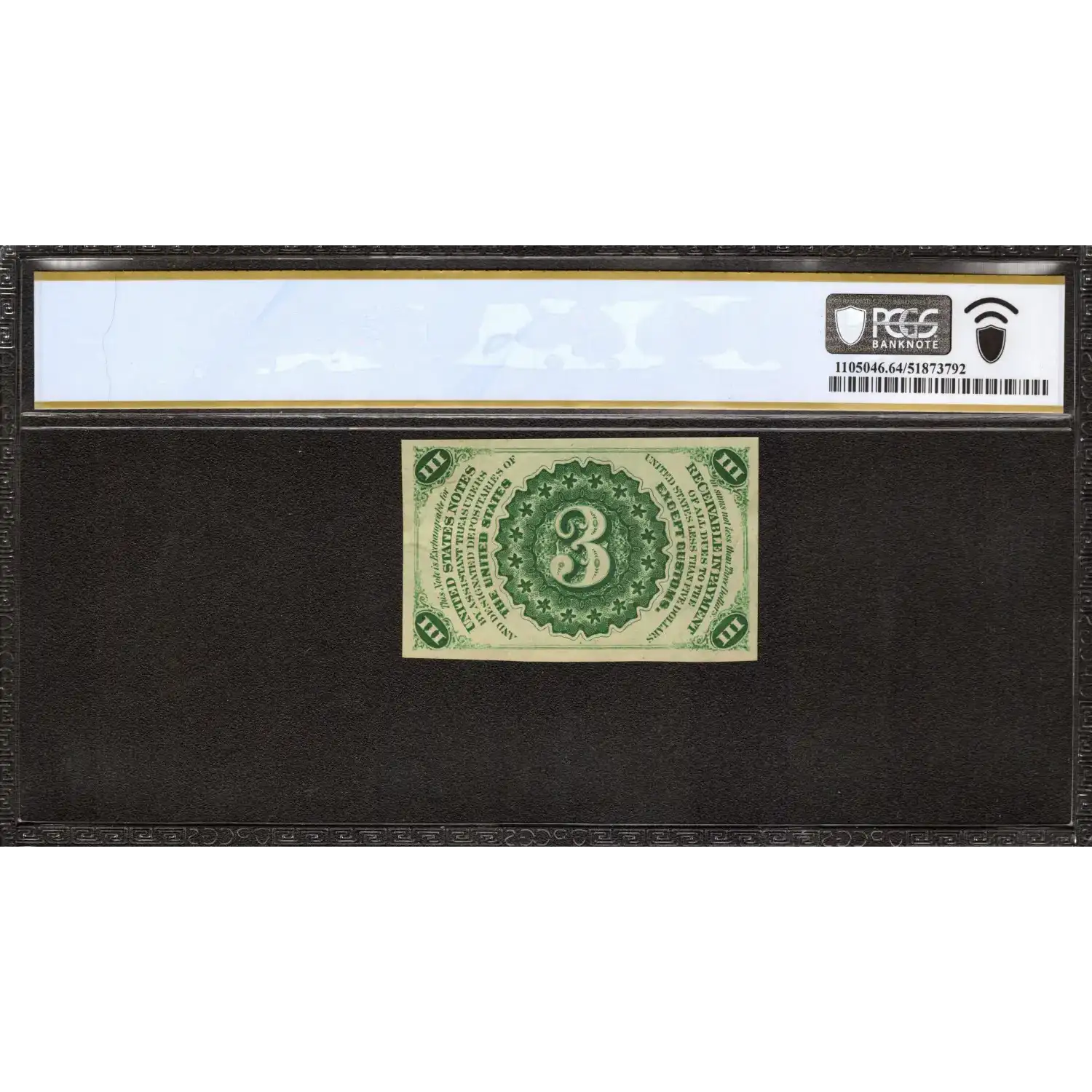 THIRD ISSUE 3C FRACTIONAL CURRENCY FR.1226 LIGHT PORTRAIT BACKGROUND | PCGS CERTIFIED CU 64 CHOICE UNCIRCULATED