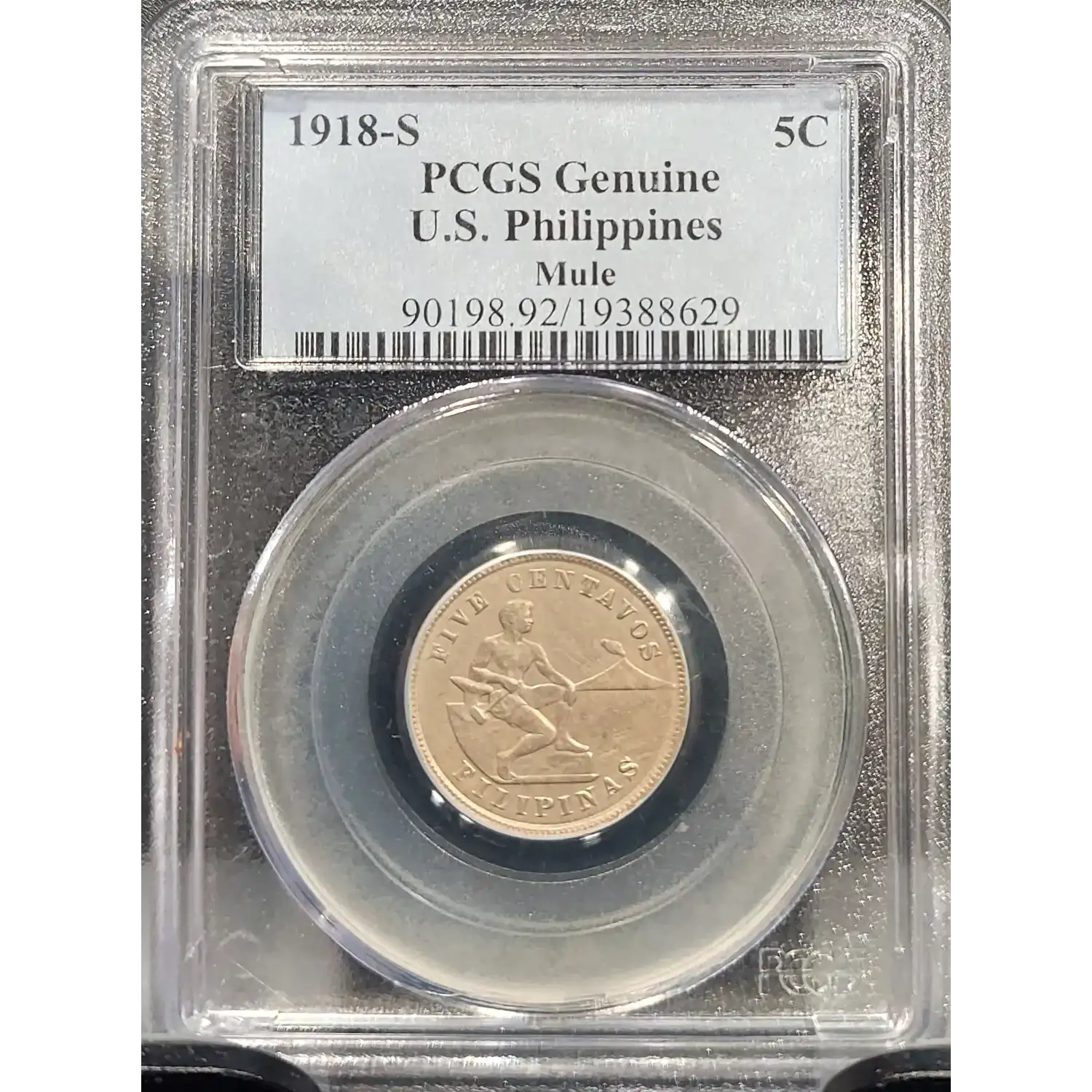 <header> 1918 S USA PHILIPPINES CENTAVOS 5C MULE PCGS CERTIFIED GENUINE (629)