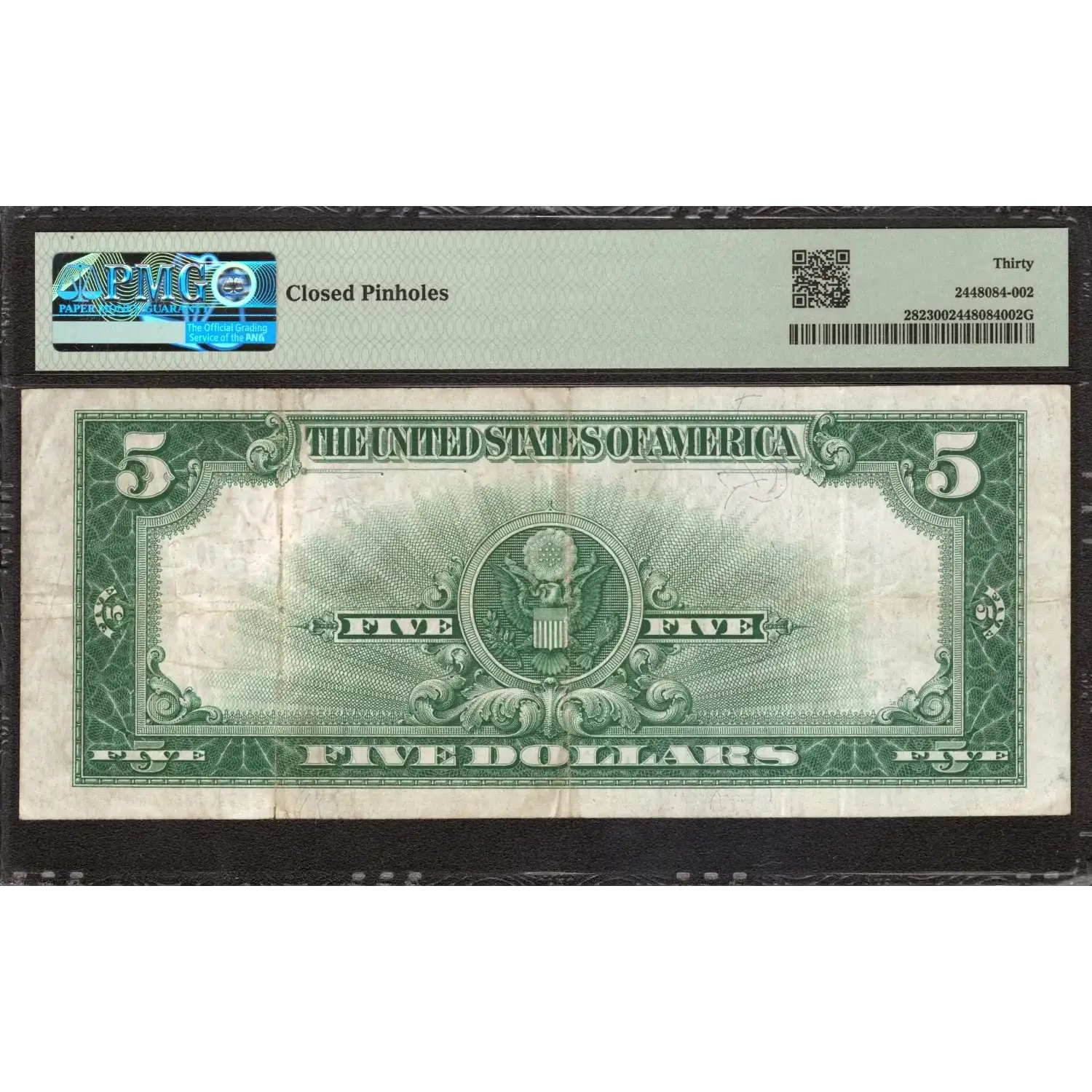 1923 $5 SILVER CERTIFICATE FR.282 A-B BLOCK , SPEELMAN WHITE | PMG CERTIFIED VF 30 VERY FINE