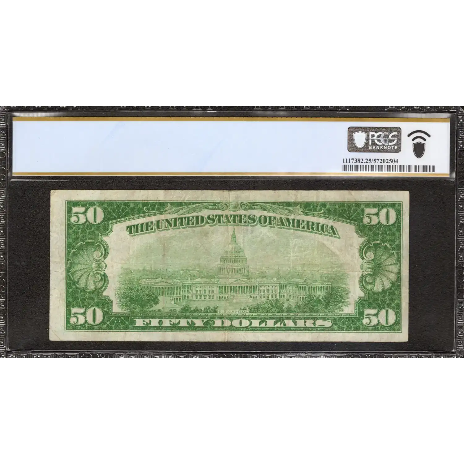 1928 $50 GOLD CERTIFICATE FR.2404 A-A BLOCK , WOODS MELLON | PCGS CERTIFIED VF 25 VERY FINE